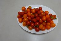 キティちゃんガーデンではミニトマトが大収穫です!!大きなお皿にミニトマトがたくさん♪