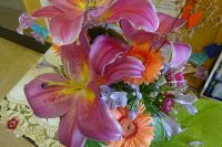 入居者さんや来設された方にも「大きなユリだね~」「珍しい色合いですね」と声をかけて頂き会話も弾みました(*^_^*)