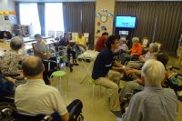 今日の午後はハンドマッサージをしました!猛暑日で大変蒸し暑いです。体調管理に留意して下さい。(>_<)今日のBGMは皆さんが口ずさめる曲を流し歌いながらリラックスタイム!職員と会話をしながら歌いながら楽しみながらハンドマッサージで癒された様です♪♪