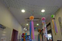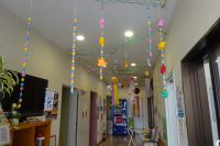 玄関では七夕飾りでお客様をお出迎えしています。キティちゃんの短冊もご用意しています。