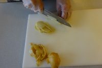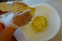 今日は、皆さん楽しみにしている手作りおやつの日です、今日はジャガイモを使って「ジャガイモ餅」を作りました!材料は(ジャガイモ・小ねぎ・生姜・白いりごま・糸とうがらし・片栗粉・出汁・ごま油・酢・しょうゆ)ジャガイモをすりおろし、生姜、小ねぎをみじん切りにして、いりごま、片栗粉、だしを混ぜ、ホットプレートに油を引き糸唐辛子を乗せた上にタネを流し、焦げ目がつくまで焼きます、仕上げにごま油のたれをかけて出来上がり!もちもちした触感に糸唐辛子の辛みと生姜の風味で皆さんからは「美味しい!」「お酒が欲しくなる」「おかわり!」と普段はお替りされない方も今日は沢山の方がお替りされ、大満足された様です!次回も楽しみにヽ(^o^)丿