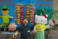写真)弁天通り商店街に飾り展示しています。キティーちゃんとひろしが待っています。