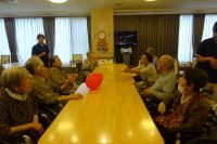5月として記録的な暑さが続き、今日の気温は一息ですが大変蒸し暑くなって来ています。除湿クーラーを効かしています。身体が冷えるので、レクで的当てゲームをおこないました。!動物のカードに点数があり、高得点が出る様に自分の選んだカードにお手玉を投げ、得点を競うゲームです!高得点カードを遠くに置きました。(^_^;)500点をめがけて投げる人!得点よりも好きな動物のカードを狙う人!そっとお手玉を投げる人!一人一人の個性が出て楽しいです。お手玉を投げるのも、点数を数えるのもリハビリになります。☆今日も皆さん楽しく参加できました。!