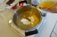 今日も前橋は35度と真夏日です。今日は手作りおやつの日で「わらびもち」を作りました!!材料は片栗粉に麦茶と砂糖を混ぜて火に鍋を掛け、固まって来るまでひたすらかき回しますが、時間で10~15分程度、固まってきたら冷水に戻し切っていき、バケットの中できな粉をまぶし黒蜜を掛けて出来上がりです!工程も材料も簡単ですが、固まるまではひたすらかき回すのがポイントです。今日の暑さには、丁度良いおやつでした!皆さんお替りされ美味しく頂けたようです。次回が楽しみですヽ(^o^)丿