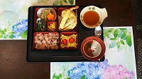 昼食は箱弁当でおいしい献立でのお食事を提供させていただきました。