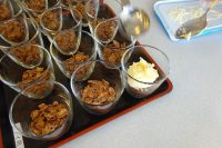 今日は皆さん楽しみの手作りおやつの日です。今日は「チョコレートプァフェ」を作りました!利用者様に参加して頂き殆どの作業過程をして頂きました。具材には、フルーツをカット。!器にカットしたフルーツを入れアイス、生クリームを入れ最後にチョコクリームでコーティングしチョコチップを掛け出来上がり!甘くて大変美味しい!!と皆さん完食されました。次回が楽しみです(^o^)丿