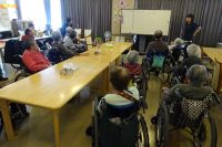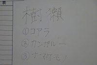 今日の午後は脳トレレクは、「漢字の読み上げ」を行ないました。!職員によりボードへ漢字を書き、利用者さんに読んで頂きます。そのままの漢字では解からないのでヒントで①②③の一つに正解を書き、当てて頂きます。写真)例:樹獺、なんて読みますか。ナマケモノです。葡萄柚では、グレープフルーツと読みます。皆さん集中して行われております。(^_^;)!毎週のレクに脳トレで脳の活性化を図っています今日も皆さん楽しめたようです(*^^)v