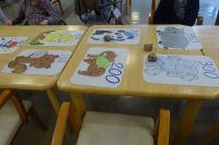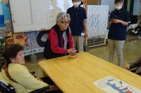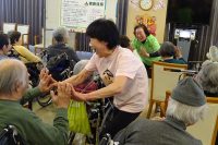 「的当てゲーム」をおこないました。!動物のカードに点数があり、高得点が出る様に自分の選んだカードにお手玉を投げ、得点を競うゲームです!高得点カードを遠くに置きました。(^_^;)500点をめがけて投げる人(写真)!得点よりも好きな動物のカードを狙う人!そっとお手玉を投げる人!一人一人の個性が出て楽しいです。お手玉を投げるのも、点数を数えるのもリハビリになります。☆今日も皆さん楽しく参加できました!