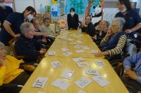 新年を迎えして!お正月を楽しもう!と本日のレクは「神経すいじゃく」をしました!(手作りしたカードです。)カードを裏にして同じ絵柄2枚を当てます。前に出たカードの場所を覚えて行きます。周りの皆さんも応援しながら近くにあるよ、どっちかなと選びます。当たった時の笑顔が良かったです。大変楽しめて良かったようです!参加利用者様も、お正月の遊びを懐かしく楽しめたようです!!