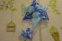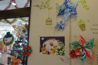 職員さんが折り紙で作ってくれた立体的で可愛い雪の結晶はお客様に好評です(*^_^*)