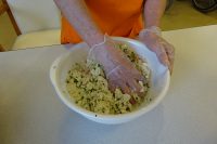 今日は、おやつ作りの日です!今日のメニューは「豆腐のおやき」を作りました。豆腐をベースに具材(たまご・小ネギ・ツナ缶・パン粉)を準備し、手で形を整えホットプレートで焼いて完成です。各自担当者によって分担作業で作っています。焼く臭いで美味しさを誘い今日は何を作っているのか質問が多く見受けました。大変上手く出来上がりました。皆さんより大変美味しいと好評でありました。 次回も手作りおやつ、楽しみにして下さい。(^-^)