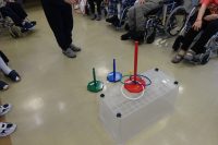 今日の午後のレクは運動レクで、輪投げをしました!輪を投げ的のポールに入れます。!!