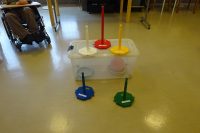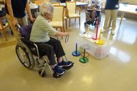 今日の午後のレクは運動レクで、輪投げをしました!輪を投げ的のポールに入れます。!!