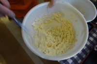 今日は、おやつ作りの日です!今日のメニューは「豆腐でわらび餅」を作りました。ボールの中で豆腐を良くつぶし水を少々・砂糖・片栗粉を入れ良く混ぜ練ります。練りあがったら鍋に移し熱を通し程良く練られたら、水で冷やし一口サイズに切ります。きな粉にまぶせて黒蜜を掛け完成です。各自担当者によって分担作業で作っています。大変上手く出来上がりました。皆さんより大変美味しいと好評でありました。 次回も手作りおやつ、楽しみにして下さい。(^-^)