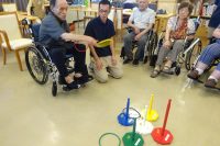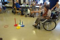今日の午後のレクは運動レクで、輪投げをしました!輪を投げ的のポールに入れます。!!
