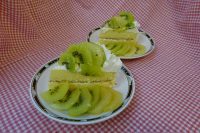 今日は、おやつ作りの日です!今日のメニューは「お誕生日ケーキ」を作りました。スポンジ生地に生クリームで下地を作りその上にカットしたキウイを飾り完成です。キウイは黄色と緑色の2種類を使っています。各自担当者によって分担作業で作っています。大変上手く出来上がりました。8月度のお誕生日をお祝して召し上がりました。大変美味しいと好評でありました。 次回も手作りおやつ、楽しみにして下さい。(^-^)