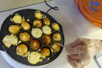 今日は、おやつ作りの日です!今日のメニューは「ベビーカステラ」を作りました。具材はバナナ・シナモン・チョコの3種類です。たこ焼き用ホットプレートで焼きます。焼く途中で3種類の具材を入れます。焼き加減を見ながら完成です。各自担当者によって行っています。焼く臭いが美味しそうと、大変上手く出来上がりました。食べても美味しいと好評でありました。 次回も手作りおやつ、楽しみにして下さい。(^-^)