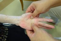 涼しい室内でハワイアン風BGMが流れている環境の元、利用者様と談話をしながらリラックスタイム!!マッサージはとても気持ちが良いと好評です。肌の艶も出て血行促進になります。ウトウトされる利用者様もZzz..