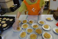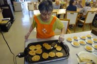 今日は、おやつ作りの日です!今日のメニューは「お好み焼き」を作りました。具材の下準備する人(1・さくらえび、イカ・ベーコン、キャベツを切る。2あげ玉、紅生姜を用意する。)焼く人(ホットプレート)配膳準備する人(お皿に盛り付ける)各自担当者によって行っています。焼く臭いが美味しそうと、大変上手く出来上がりました。食べても美味しいと好評でありました。 次回も手作りおやつ、楽しみにして下さい。(^-^)