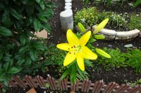 外花壇では紫陽花が沢山咲いています。ユリも綺麗です。