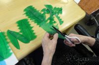 七夕飾りの作品作成中です。各自作業分担で行っております。下準備はいっぱい必要です。