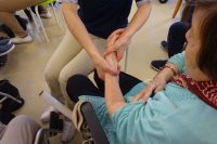 本日はハンドマッサージの日です。リラックス出来るBGMが流れている環境の元、利用者様と談話をしながらリラックスタイム!マッサージはとても気持ちが良いと好評であります。肌の艶も出て血行促進になります。今日は雨です、湿度も高く不快の一日ですが、マッサージを受ける事で肌の状態良好、気分は晴れになりましたと伺う。皆さん次回も楽しみにされていますヽ(^o^)丿