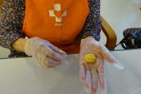 今日は皆さん楽しみの「手作りおやつの日」です!ミニメロンパンを作りました。材料(ポットケーキミックス・たまご)を混ぜる所から始め、パンの形に丸め、その後オーブンで焼きました!焼き上がると丁度良いサイズに出来上がりました。出来たてのメロンパンを食べて「美味しい!」との声が多数上がり、本日も美味しいおやつで満足されたようです!次回が楽しみですね(^v^)