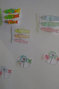 デイサービス入口の壁には毎月、季節の作品を飾っています。利用者様に貼り絵や塗り絵をして頂いた作品を壁に貼り季節を感じられるようにしています。今月は「鯉のぼり」をテーマにして貼り絵の鯉のぼりや塗り絵の鯉のぼりが泳いでいます!毎月のテーマを考えるのも利用者様の楽しみでもあります!来月はどんな作品が壁を飾ってくれるでしょうか?楽しみですね(^v^)