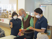 本日はボールを点数やお題が書かれた大小様々なかごの中に投げ入れて点数を競ったりお題に答えるゲームをおこないました。お題は野菜8個の名前、ジャンケンを勝ったら+50点、投げキッスなど色々あり、身体も頭も使いました。皆さん楽しんでおられました。次回も楽しみにしていて下さい(*^^)v