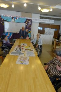 皆さん集中して取り組んでおります。指先を使い作業療法効果になっております。少しづつ出来上がりが楽しみですね。