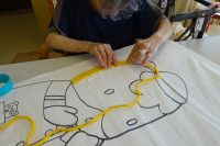 デイサービスセンター、前橋七夕飾り作品製作中