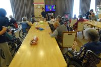 本日のレクはビンゴゲーム。カードを配りカラオケでビンゴスロットルで数字を出し、各自でカードの数字を空けて早くビンゴが当たった人が一番になります。あと一つが当たらず数人も方がハラハラドキドキで大変盛り上がりました。一番ビンゴの方、おめでとうございました。何でも一番は良いねと感想を伺いました。(*^^)v