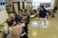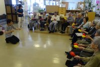今日は♪音楽療法の日♪です。今月もテーマは「自己表現」で楽器を使い歌に合わせてリズムを取りながら表現してみました!トーンチャイムは毎回使う楽器ですが、鳴らし方が弱いと音色も小さくなってしまうので難しいようです。今日は「さくらさくら」から始まり「花・港のみえる丘・青い山脈・どじょっこふなっこ・北国の春・おぼろ月夜」全10曲を歌いリズム遊びで自己表現ができました。次回が楽しみですヽ(^o^)丿