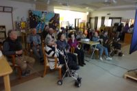 脳トレ(お絵かきクイズ)を行ないました。皆さんボードに向かい、職員が少しずつイラストを描いて、描いている途中から答えを出して行きます。ヒントも出しながら答えて頂きます。答えが出て来るまで色々なヒントを出しながら、おもしろ楽しく進めております。皆さん楽しく参加出来て良かったと様です。!!