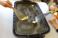 今日の手作りおやつは「ラスク」を作りました。ホットプレートでバターを溶かしお麩を入れて焼き揚げて、途中砂糖を混ぜ香ばしく焼いて出来上がりです。皆さんより手作りのサクサク感があり美味しいと満足されたようです。(*^^)v