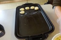 今日の手作りおやつは「とうふ・おやき」を作りました。万能ネギとにんじんを刻みます。豆腐とおからを良くつぶし刻みネギとにんじんを混ぜ合わせます。一つ一つおやきとして形を作り、ホットプレートで焼き出来上がりです。好みに合わせ醤油で味付けし完成です。ヘルシーで食べやすく、皆さんより美味しいと満足されたようです。(*^^)v