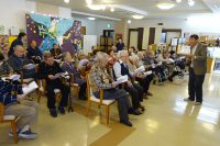 ハーモニカ演奏会を行ないました。全国ハーモニカ連盟の大澤理事様による慰問公演です。いい湯だな、かあさんの歌、等8曲ハーモニカ演奏に合わせ歌を歌い懐かしく楽しく行ないました。ソロハーモニカでは音色に皆さん聴き入られていました。今回も大変有意義な時間を過ごせました。次回の予定はH30年4/23(月)を予約しました。