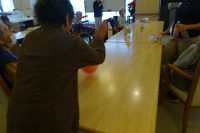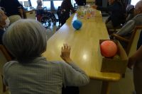 本日は運動レクリエーションを行ないました。!手作りのピンをボーリング用に並べボールを転がしピンを倒します。一人4回投げ多く倒した点数で順位を決めます。皆さん真剣モードに切り替わりいっぱい倒した時の満足したと言う表情がでたり、悔しがったりと色々な表情が見えました。ガンバレーと応援して拍手されたり大いに盛り上がっておりました。職員も入り皆さんと一緒に楽しい時間を過ごせたと思います。ヽ(^o^)丿