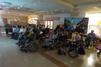 今回の音楽療法は「寒い時期なので大きな声をだしましょう。」と内容では準備体操を行ない、皆さん発声練習をしてから冬の歌をテーマで、冬景色・冨士のやま・高校三年生など全10曲を歌いマラカス、、ハンドベル・太鼓の楽器を使い身体の動きに音を合わせ遊びをしました。普段大きな声を出す事がないので、声が少しはっきり出る様になったと聞いています。今回も皆さん楽しく参加出来た様です(*^^)v