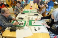 昨日に続き『書き初め』を行ないました。利用者様からは、書き始めが緊張して手が震える方もいたり、手慣れて書ける方も、出来た書を見てお互いに褒め合いながら書き初めの時間を楽しんで頂きました。久し振りに書を書いたと言う方が多かった様ですが大変良く書けて皆さん喜んでおりました。