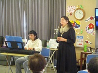 今日の午後は音楽会で声楽の先生がみえて歌って下さいました。身体を温めてみましょうと「ホカホカ体操」から始まりました。「早春賦」は皆さんの心が引き込まれる程の綺麗なソプラノの歌声でうっとりと聞き入っていました。冬のメドレーでは「たき火」「冬景色」「ペチカ」等童謡を皆さんと歌い「チムチムチェリ―」は身体を皆さん揺らしていました。アンコールの「さくら」「花」も口ずさんでいました。男性の利用者様から「千の風になって」をリクエストされてアカペラで歌われて「次回は伴奏と歌詞も練習しますね」と約束されていました。次回が楽しみですね(^^♪