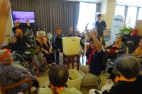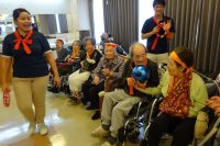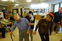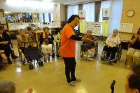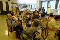 前回好評であった、ラフターヨガを観覧し体験しました。明るく元気な演出で皆さんおもしろ、おかしく笑えました。緊張が取れた所で身体を動かしたり2人で向かい合いお互いでゲームを楽しく行ったりして沢山笑いもあり、とっても楽しく過ごされました。一部の方よりここ数年こんなに笑った事がなかったと伺っています。笑う事は大変良い事ですネ。皆さん楽しまれ良かったです。