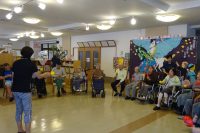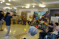 今日は皆さん、楽しみの♪音楽療法の日♪です。何時ものように発生練習から始め、案山子の歌からスタートしました!証成寺のたぬきの歌に合わせてマラカスを鳴らしたり、歌に合わせて体操をして盛り上がりました。学生時代・人生の並木路・故郷の空等、全10曲を歌い、皆さん楽しく参加出来たようです。次回の曲はどんな曲が用意されるか楽しみですねヽ(^o^)丿