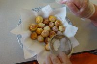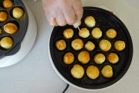 今回は3種類のドーナツを作りました。生地(ホットケーキミックス)の中に、お豆腐と白玉をつぶして良くこねた後、手で丸めました。たこ焼き用の鉄板で焼き揚げ、仕上げで3種類、粉砂糖・ココアパウダー・抹茶パウダーを振り掛け完成です。参加利用者様には分担を決めて材料作りや盛り付けをして頂きました。程良くやわらかく出来上がりました。利用者様からは「今日も美味しかったと伺いました。」次週はどんなおやつが出来るか皆さん楽しみにされています(^v^)♡