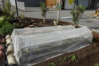 施設玄関横にある、花壇のリフォーム作業が進んでいます。2列のハウスには『白菜とキャベツ』、春に楽しめるチューリップの種も撒き、これから春まで楽しめるパンジーと色咲なでしこを植え、今日はみかんの実が付いているみかんの木を植えました。リフォーム完成には『花・木・野菜・果物』が楽しめる花壇が出来上がる予定で少しずつ苗や種を巻き一年を通して楽しめる花壇が出来上がります。入居者様や訪問者の方も楽しみにされています。