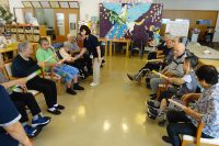 今日のレクでは来月の運動会に向けて種目の『ボール渡し』『輪くぐり渡し』の練習をしました!チームに分かれてどちらが早くゴールするかの競い合い、始めは競争心がなく和やかにしていましたが、練習をしていくうちに競争心が沸き、相手チームより早くゴールをしようと利用者様同士で声を掛け合う様子が見られました。来月の本番に向けて練習にも力が入り利用者様同士のコミュニュケーションもより一層高められ、皆さんワクワクしているようです。