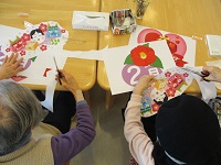 本日は2月のデイルームに貼る用の絵を利用者様に切って頂きました。普段は職員が切っていましたが、11名の利用者様に切ってもらった為、30分くらいで終わりました。ありがとうございました。「俺こうゆうの好きだからまた言ってね。」と言って頂きました。時間が余った為、残りの時間は「とんち文字クイズ」をしました。