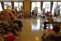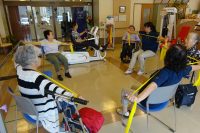 今年の梅雨は晴れの日が多く雨の日が少なくこのまま行くと、夏場の水不足が心配であります。7月に入り気温も猛暑日と言われる日々が連日続いています。体調管理等に注意や室温温度管理も必要であります。体力維持の為、皆さん元気にパワーリハビリと複合訓練を受けています。写真)パワーリハビリ実施状況と複合訓練ではセラバンドや重りで身体のストレッチを行なっている所です。皆さん大変良く出来ています。ご興味ある方は見学や体験も受け付けております。
