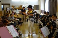 音楽療法を受けました。初めは、浜辺の歌を歌いその後、参加者全員でマラカスを持ってカモメの水兵さんをを歌いながら楽器と組合せ音楽へ引き込んで行くプログラムです。楽器では木魚やすず・マラカスを使い演奏に合わせ歌いました。代表者による指揮も入り演奏会的に行う。銀座の恋の物語では男性は鳴子、女性はすずを持って演奏に合わせ楽しく歌っています。写真では代表者による木魚を叩きながら皆さんと演奏会を行なってます。毎月第二、第四木曜日の14時~15時まで音楽療法の時間帯です。見学や体験も受付けています。