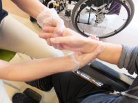 デイサービスセンター ハンドマッサージ受けています。